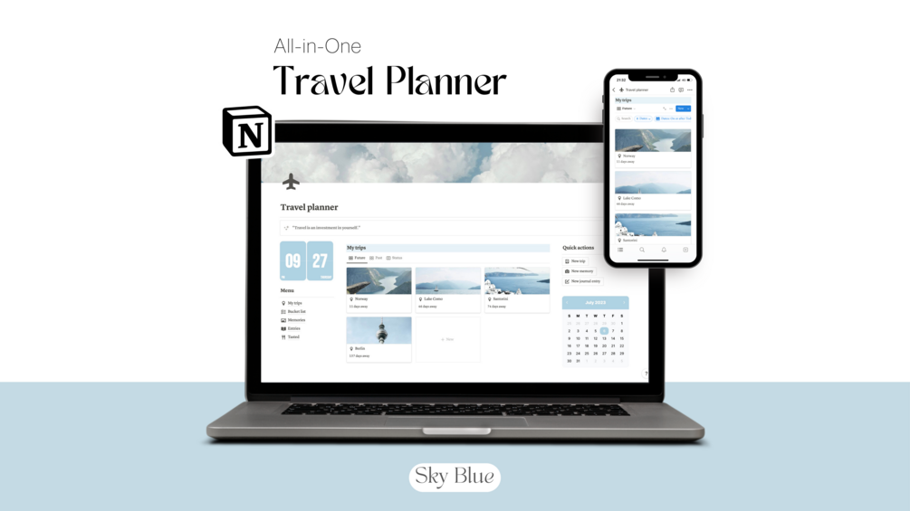 Notion Travel Planner Template | Sky Blue