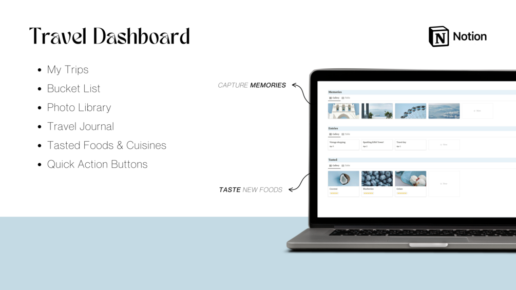 Notion Travel Planner Template | Sky Blue